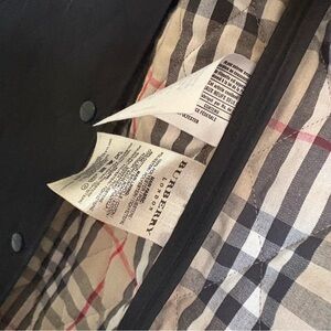 Stylish Lined with the iconic Burberry Check pattern in beige, black, red, and white, snap closure, pockets. Perfect for layering. Timeless elegance.