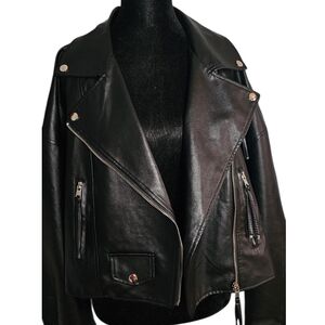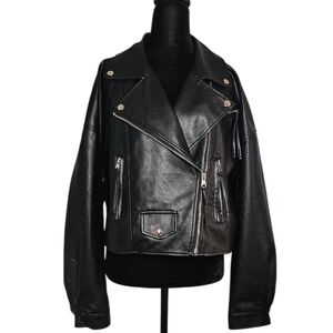 SHEIN Black Faux Leather Cropped Biker Jacket - Size L