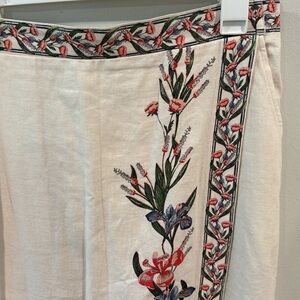 Max Studio Women’s Cream Floral Embroidered Midi Skirt Linen Pockets Size L