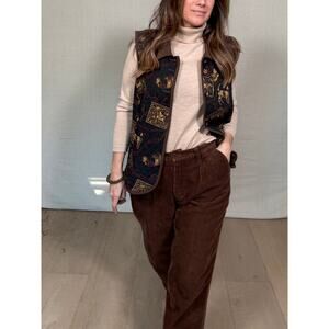 Vintage Quilted Equestrian Print Vest – Dark Brown / Black (Miu Miu-Coded)