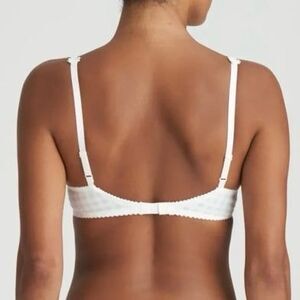 Marie Jo Avero Padded Plunge Bra Natural Ivory Underwire Gingham Floral Appliqué Straps - US Size 34C. In good preowned condition, no flaws.
