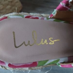 LuLus Ervyn Paradise Tropical Print Raffia Platform Slide Sandals Size 10