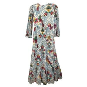 Banjanan Maxi Dress Women's Folk Floral Sky Bird Print Long Sleeve V Neck XS