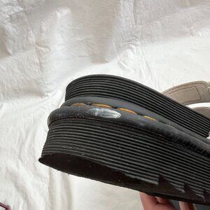 Dr. Martens Blaire Slide sandals, 3 white leather straps, buckles, chunky platform, US women's 9, preowned and shows wear on the soles and heels, discoloration - see photos