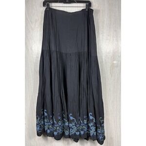 Double D Ranch Maxi Skirt Womens L Black Blue Green Embroidered Western Boho