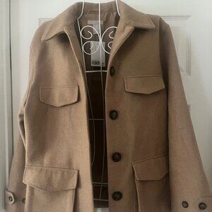 H&M Women Pea Coat Camel Sz Small Lined pockets collar Button down pockets