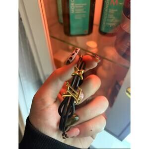 Authentic LOUIS VUITTON Monogram Bracelet LV Bloom Bracelet M8142Z Black Leather