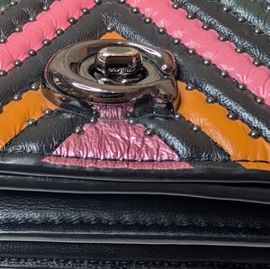 Coach Foldover Clutch Colorbock Quilting With Rivets Crossbody Bag