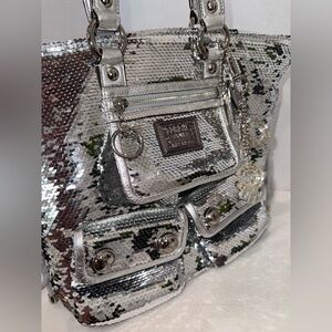 RARE Vintage New Coach Poppy Limited Edition Sequin Spotlight Silver Tote #13821