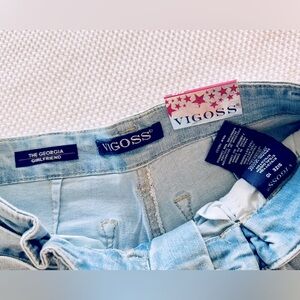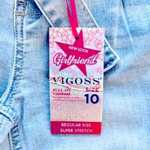 The Georgia Girlfriend Super Soft & Stretchy jeans by Vigoss. Girls size 10. Regular rise. Trendy light blue jeans with denim tie belt. Perfect for casual wear. Soft and comfortable fit.