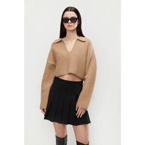 OAK + FORT Collared V Neck Cropped Sweater