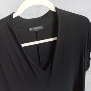 Eileen Fisher Black Jersey Knit Aline Dress. Short sleeves. Vneckline. Size tag missing See measurements in pictures.