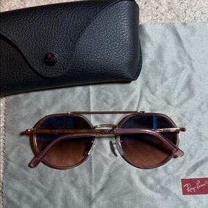 Stylish Ray-Ban sunglasses with a gold frame. Brown lenses for a classic look. Ideal for any outfit.