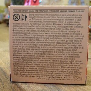 This fragrant and fizzing bath bomb has a blended and unique aroma of orange, vanilla, and cinnamon.
