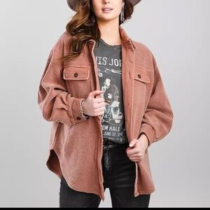 The perfect finishing touch no matter the look featured in a printed, shirt-jacket inspired silhouette and slightly oversized, boxy fit for added shape. Available in multiple colors. MSRP $178 Button-front closure Double bust pockets Unfinished trim Elbow patches Hip pockets