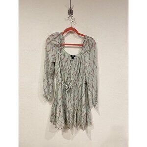 Paige Dress Womens 4 Green Floral Long Sleeve Tiered Button Front Mini Boho