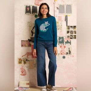 Wolf & Badger Rowena Sweater Teal, Sunbathing Kitty Cat