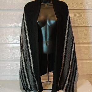 STETSON BLANKET WRAP SHAW WOMENS OS STRIPED SWEATER BRACK GRAY WESTERN PRAIRIE