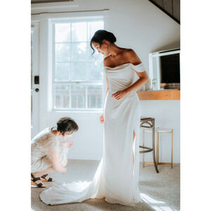 Jenny Yoo Viviana Cowl Neck Bridal Gown 10 Button Back Minimalist Wedding Dress