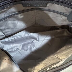 Elegant gray leather shoulder bag with a sleek design. Perfect for any occasion.