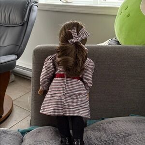 This hard to find Samantha doll is in amazing condition. It is a collectible and is posted to other sites. Includes her original outfit including tights, shoes, hair ribbon and purse. Also includes pink dress with tights and hair band. Don’t miss out on the opportunity to own one of the original American Girls.