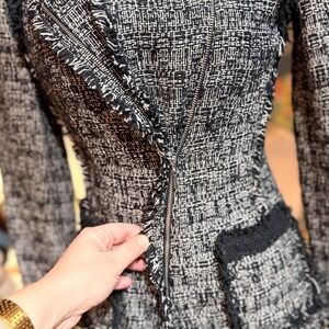 Gorgeous Rebecca Taylor tweed blazer jacket in a black and white textured tweed. Asymmetrical zip but also looks amazing open! No flaws.