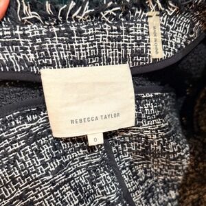 Rebecca Taylor Tweed Blazer Jacket Black White Textured Frayed Trim Size 0