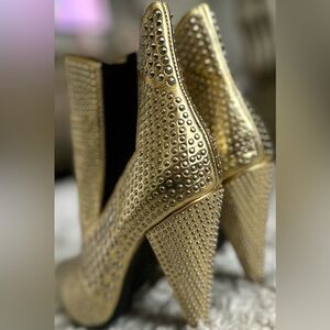 ‼️RARE‼️🎸JEFFREY CAMPBELL🎸🔥NWT🔥Studd Bootie in Gold w Silver Studs -Size 7.5