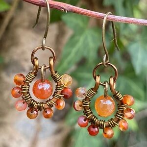 These handmade dangle earrings feature beautiful amethyst and fluorite stones.