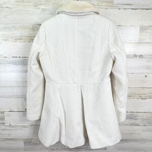 Kensie Womens Pea Coat Faux Fur Removable Collar White Peplum Waffle Knit Size L