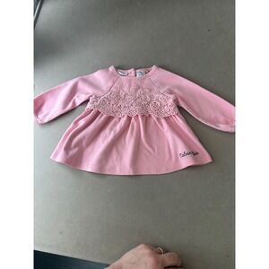 Calvin Klein Baby Girls Pink Long Sleeve Lace Peplum Top 3-6M