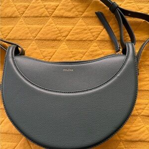 Chic Polene crossbody bag in textured green. Sleek design with adjustable strap. Ideal for everyday use. Comes with storage bag, extra strap and tags.