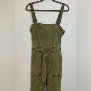 Free People Size Medium Go West Utility Jumpsuit Overalls Army Sage Green Grunge