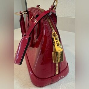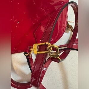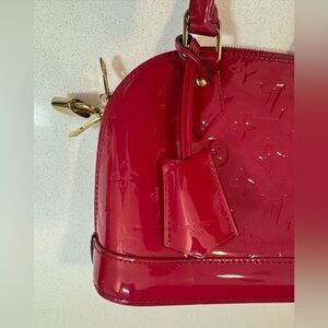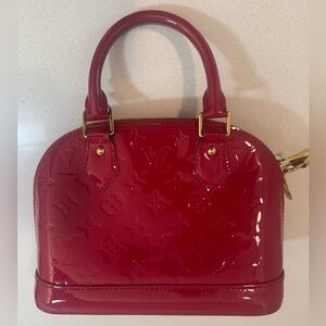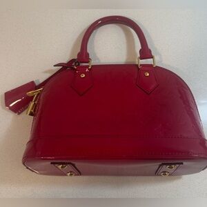 Louis Vuitton "Alma" Monogram pat-tent Leather Medium Size Bag in Red. Looks new