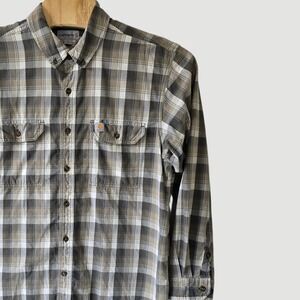 Carhartt Mens Relaxed Fit Plaid Long Sleeve Button Up Shirt XL Tan Brown