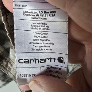 Keywords: Carhartt shirt, mens flannel, workwear, outdoor, casual, plaid, button down, long sleeve, tan, brown, relaxed fit, heavy duty, utility
