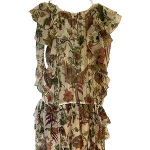 Ulla Johnson Adrienne Silk Ruffle Dress Cream Floral Size 4 Wedding Formal