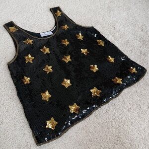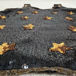 Vintage Rina Z. New York Montreal Paris 100% Silk Sequin Beaded Stars Tank Top