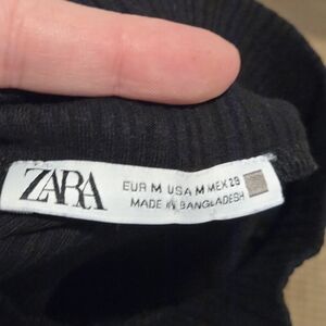 Stylish black blouse with dramatic ruffle sleeves by Zara. Ribbed with mock-neck. Size Medium but would also work for a small. Excellent Condition.