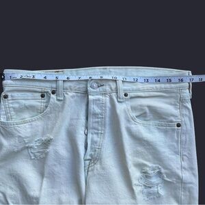 Levi's 501 straight leg, distressed, white denim jeans ~ excellent used condition ~ measurements included in the pictures