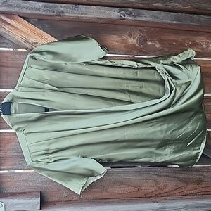 Lyaner Women's Satin Wrap V Neck Short Sleeve Blouse, Sz. Medium
