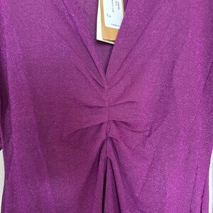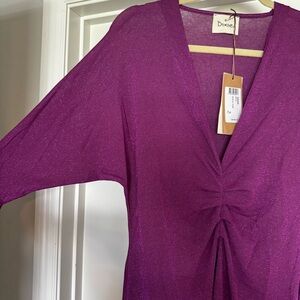 Dixie Malva gathered v neck purple metallic dress size M new with tags