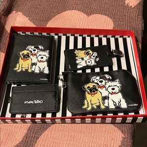 Marc Tetro Black Dog Print Zippered Pouch, Card Holder, luggage tag & passport