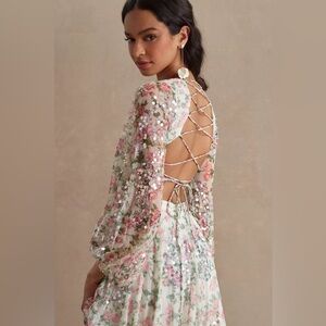 NWT A93746 Anthropologie Mac Duggal Sequined Floral Print Cutout Lace-Up Gown
