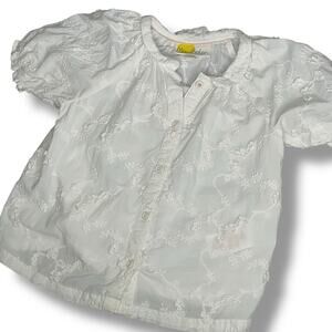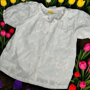 Mini Boden Girls Blouse 3-4Y Top Crochet Button Up Short Sleeve White Spring