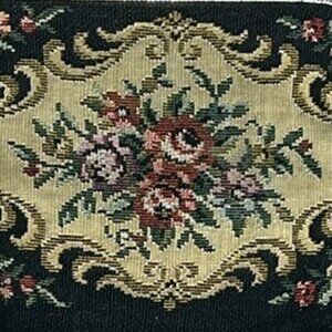 Charming vintage floral tapestry coin purse featuring a black frame with a cream background and colorful floral needlepoint embroidery. This elegant small wallet measures 4” x 5” and includes a 2-ball metal kiss lock closure, adding a touch of timeless vintage charm 🌸