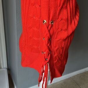 Striking red knit top from New York & Company. Ideal for versatile styling. grommet tie sides. 100% acrylic
