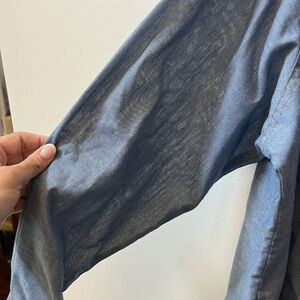 VTG Wrangler Mens 17.5 Western Blue Brushpopper Shirt Long Tails Pearl Snap USA