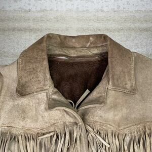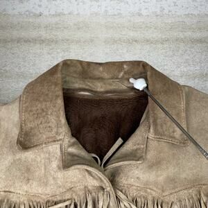 True Vintage Western Suede Leather Jacket Tan Faux Fur Lined Button Up Tassel 90s