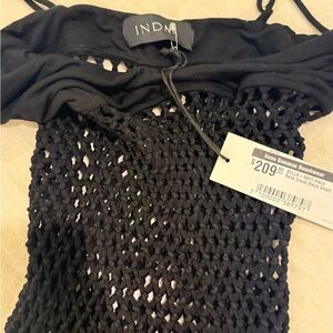 Elegant black maxi dress by Indah. Features a stylish cut-out design. Perfect for evening wear.